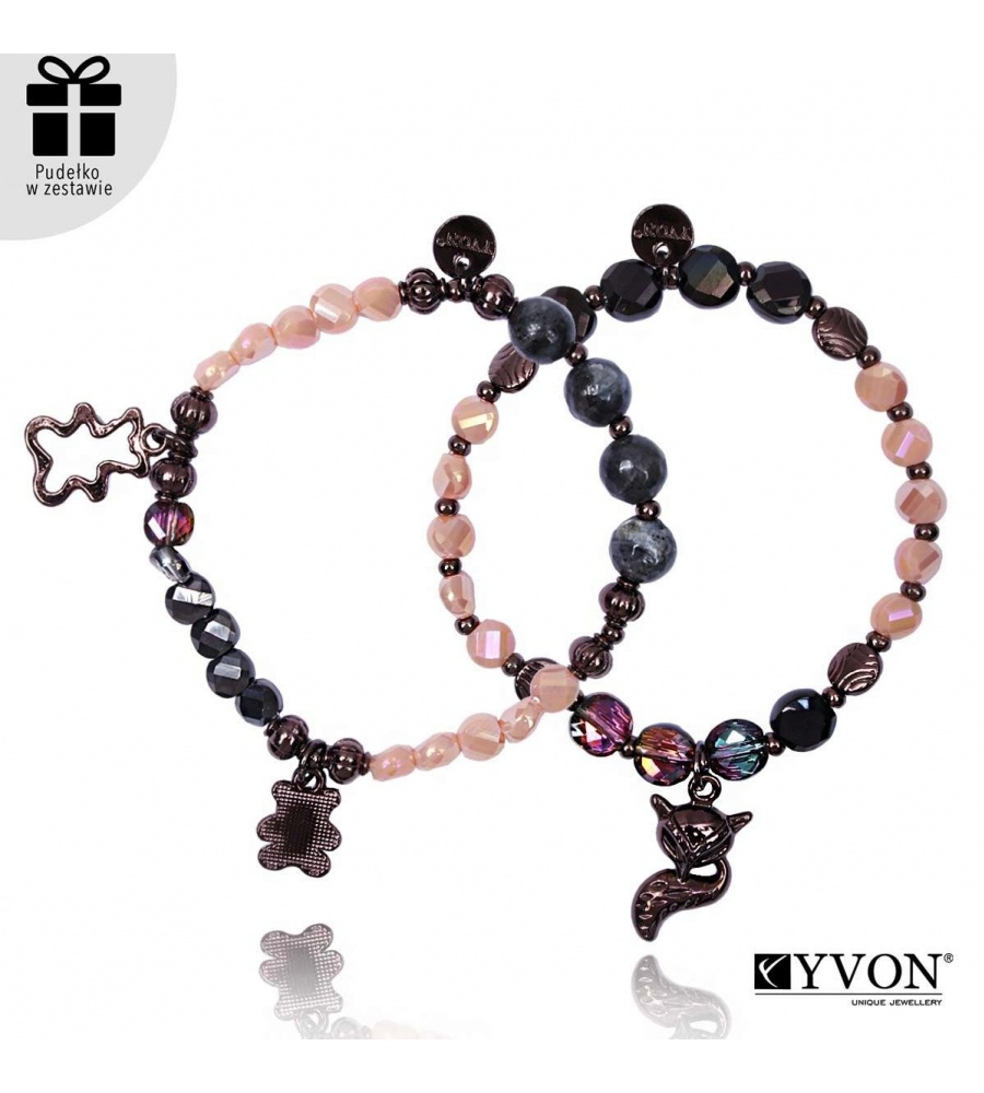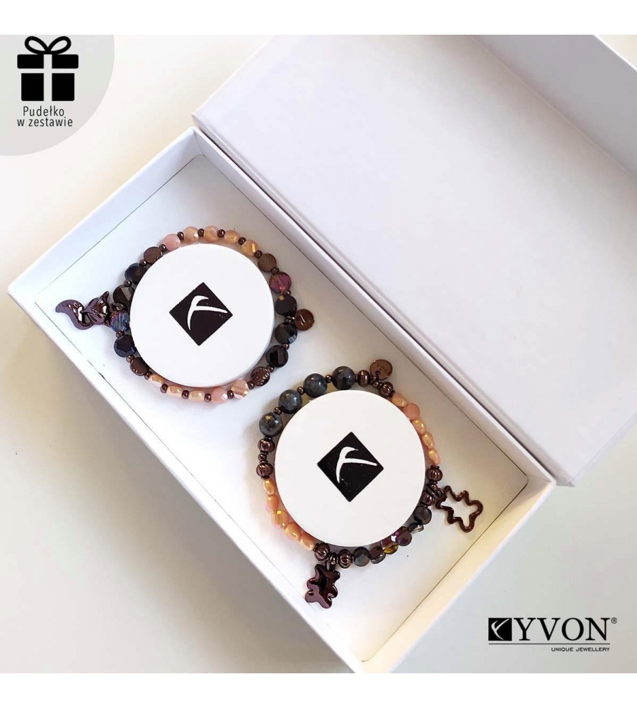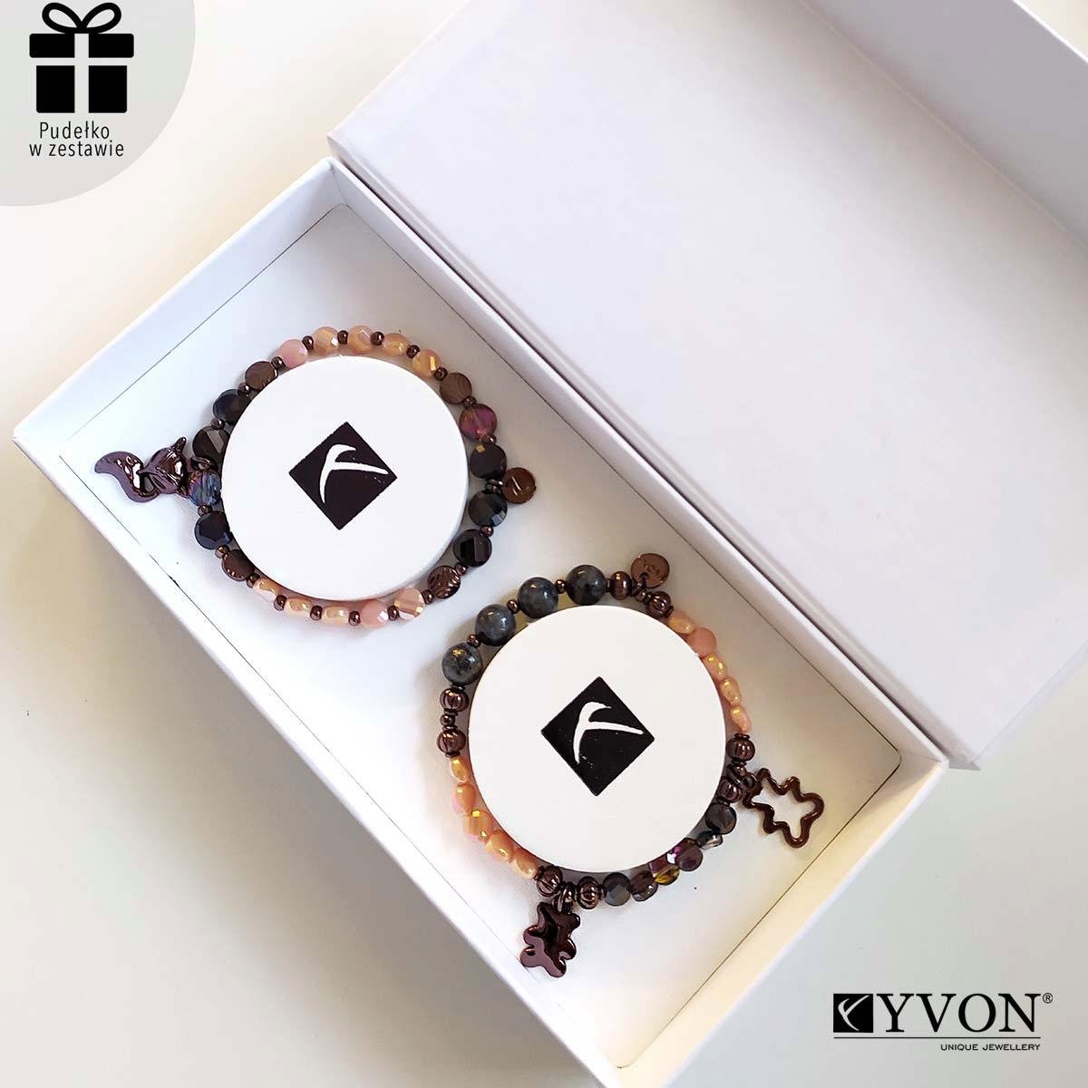 Ekskluzywny, delikatny i wyjątkowo uroczy zestaw bransolet YVON. W jego skład wchodzą dwie bransoletki - każda jest inna, ale razem stanowią wyjątkowo uroczy komplet. Całość wykonana z najwyższej jakości materiałów: kamieni naturalnych (m.in. agat, jaspis, opal), muszli naturalnej, antyalergicznej miedzi oraz szkła fasetowanego. Znakomity pomysł na ekskluzywny prezent. W zestawie z eleganckim PUDEŁECZKIEM GRATIS!