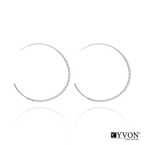 Metal antyalergiczny (mosiądz), perła szklana. Śr. 5,5 cm.