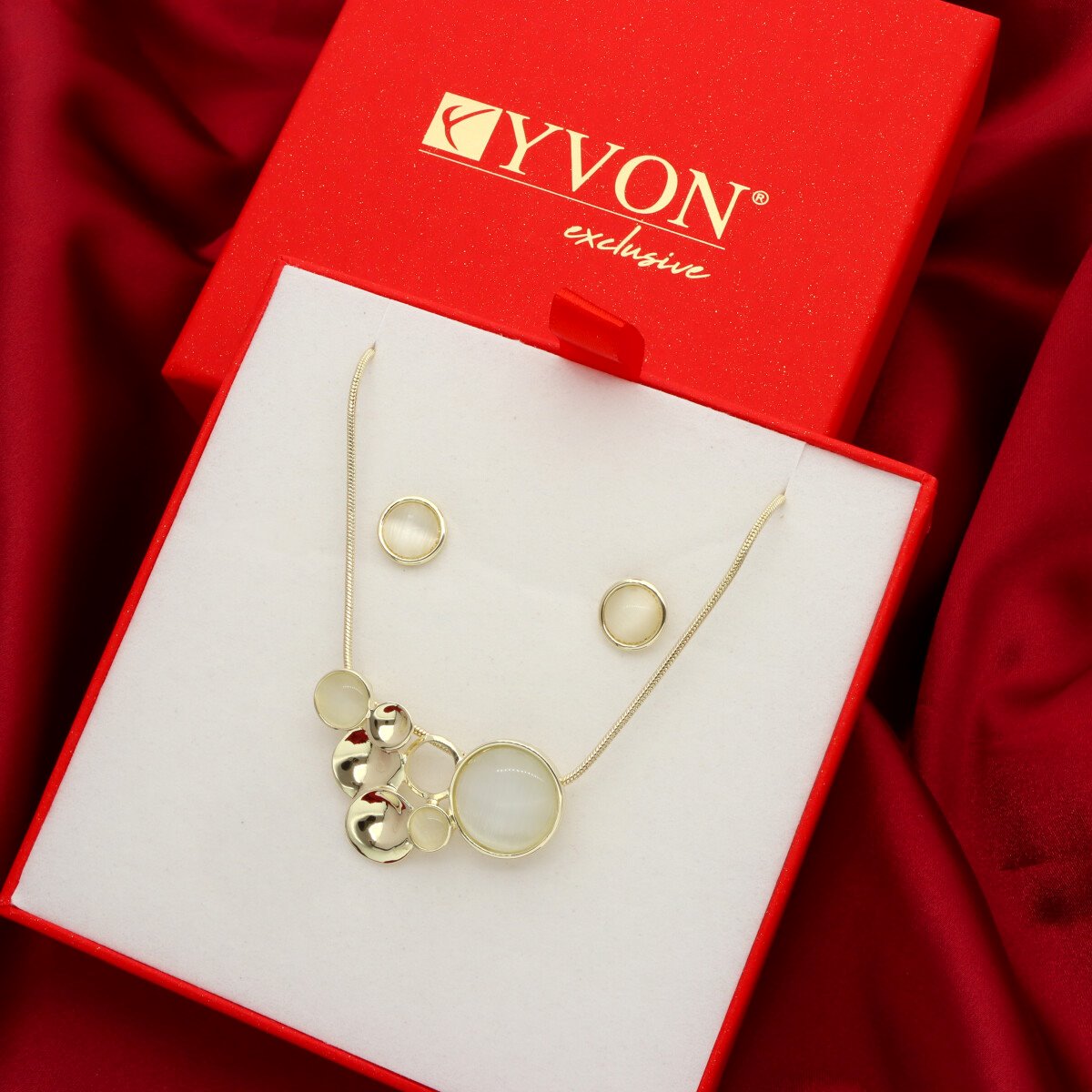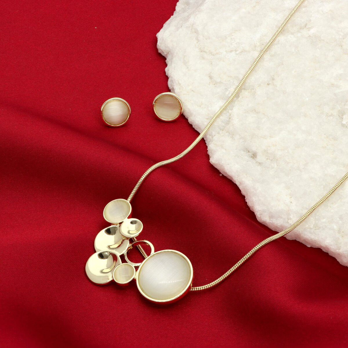 Wyjątkowo elegancki komplet biżuterii, składający się z naszyjnika i kolczyków. Wykonany z naturalnego kwarcu i metalu antyalergicznego. W ekskluzywnym pudełeczku gratis.