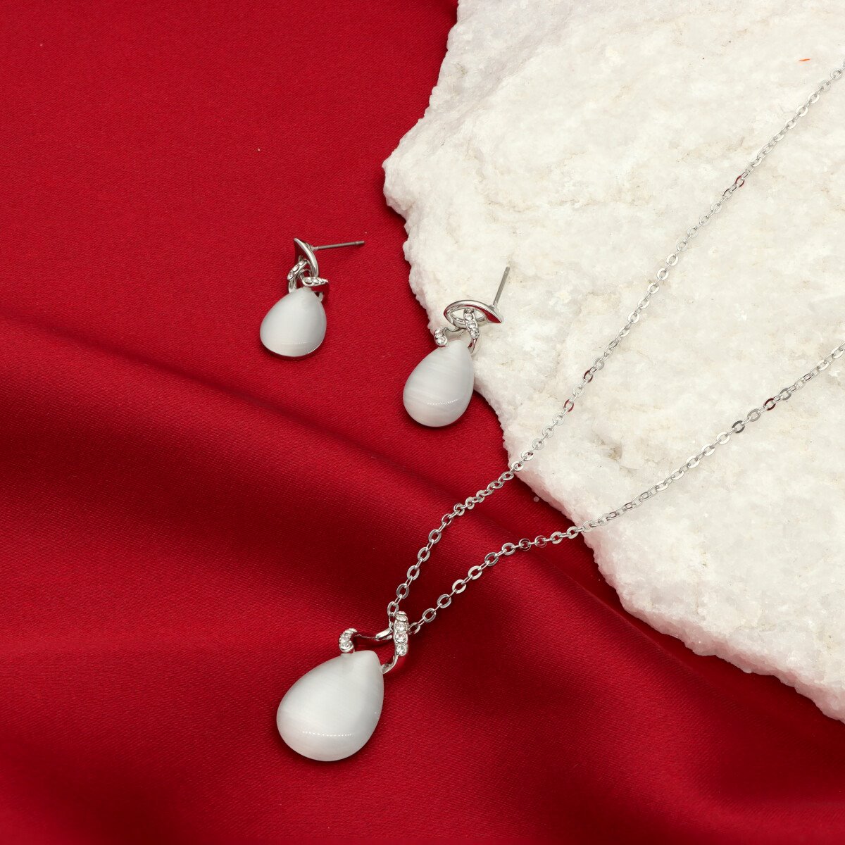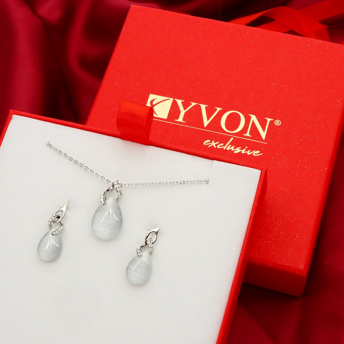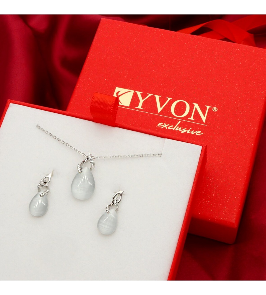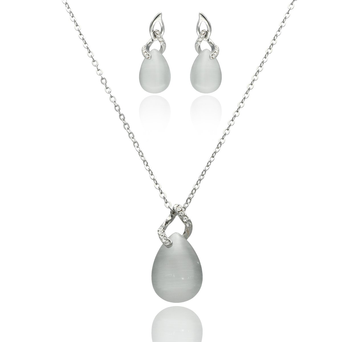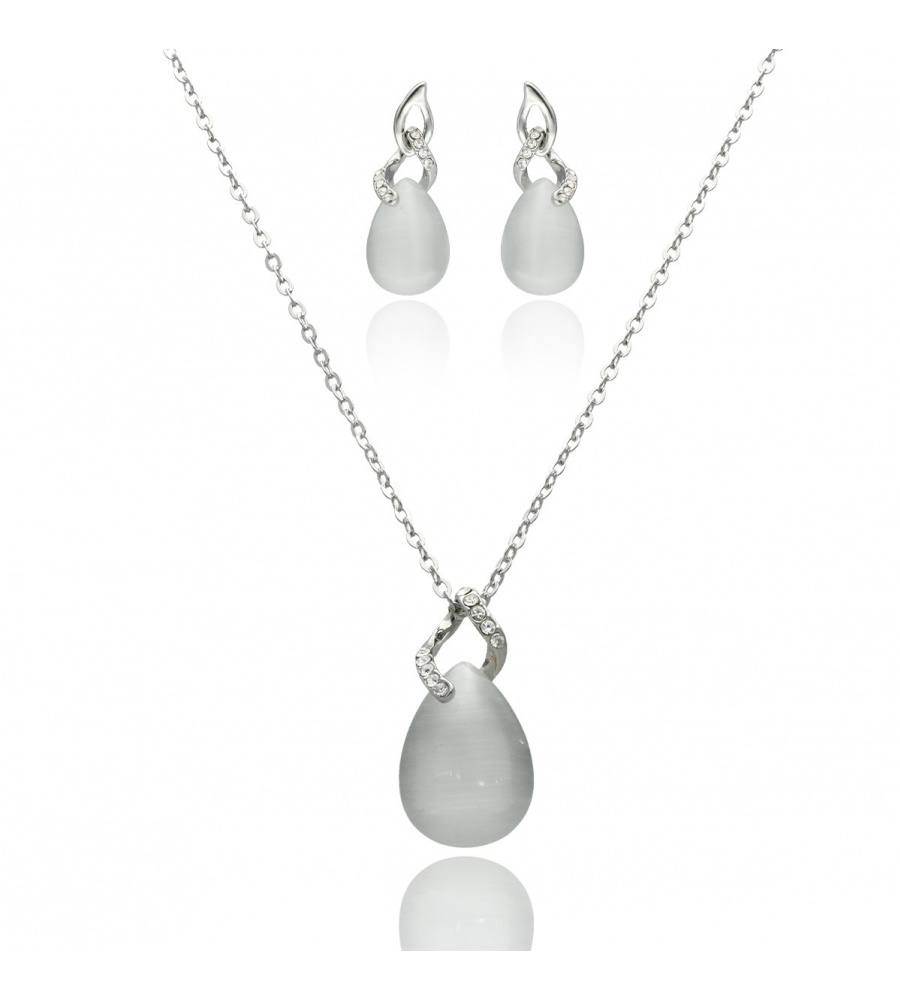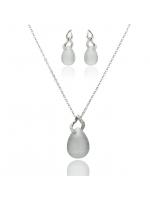 Wyjątkowo elegancki komplet biżuterii, składający się z naszyjnika i kolczyków. Wykonany z naturalnego kwarcu i metalu antyalergicznego. W ekskluzywnym pudełeczku gratis.
