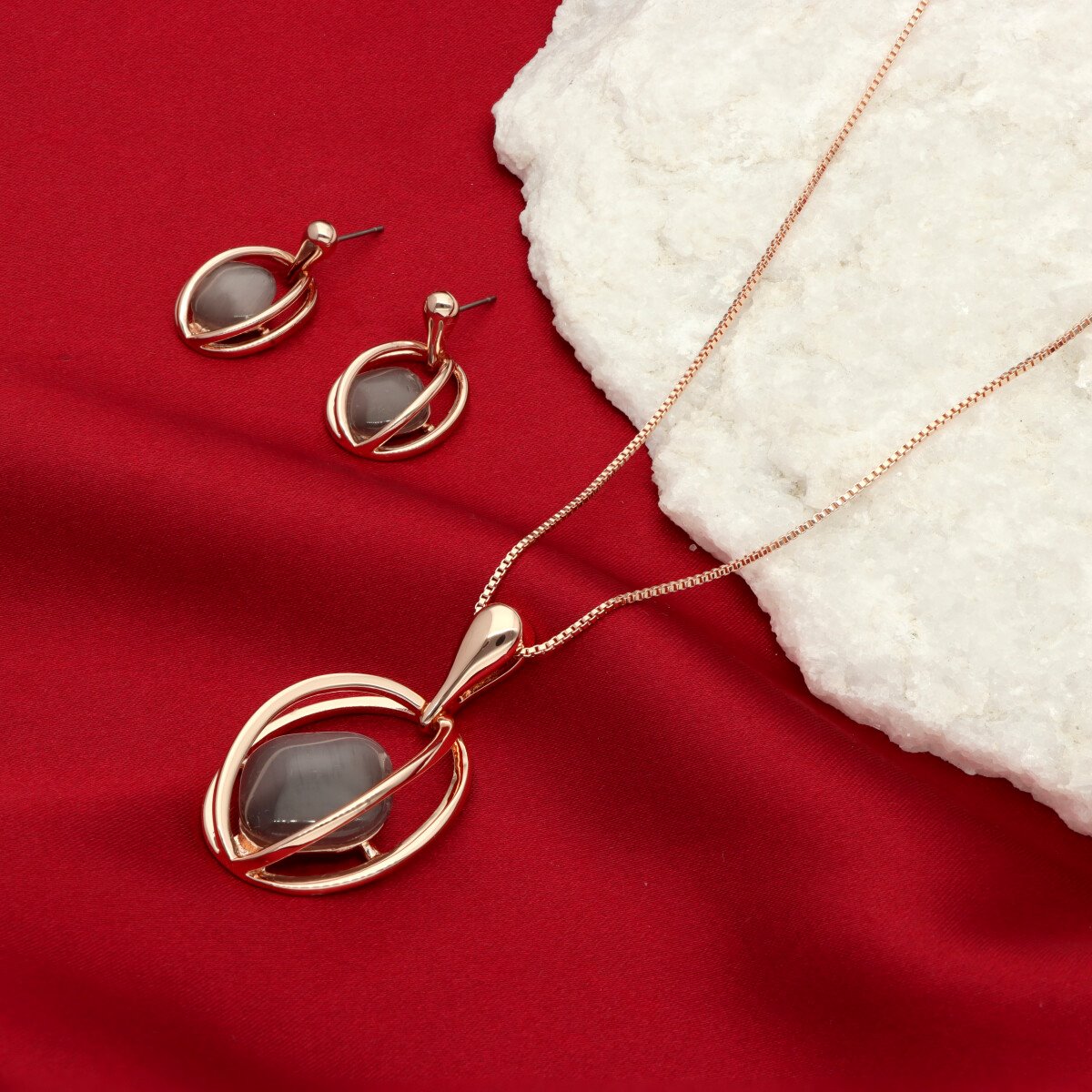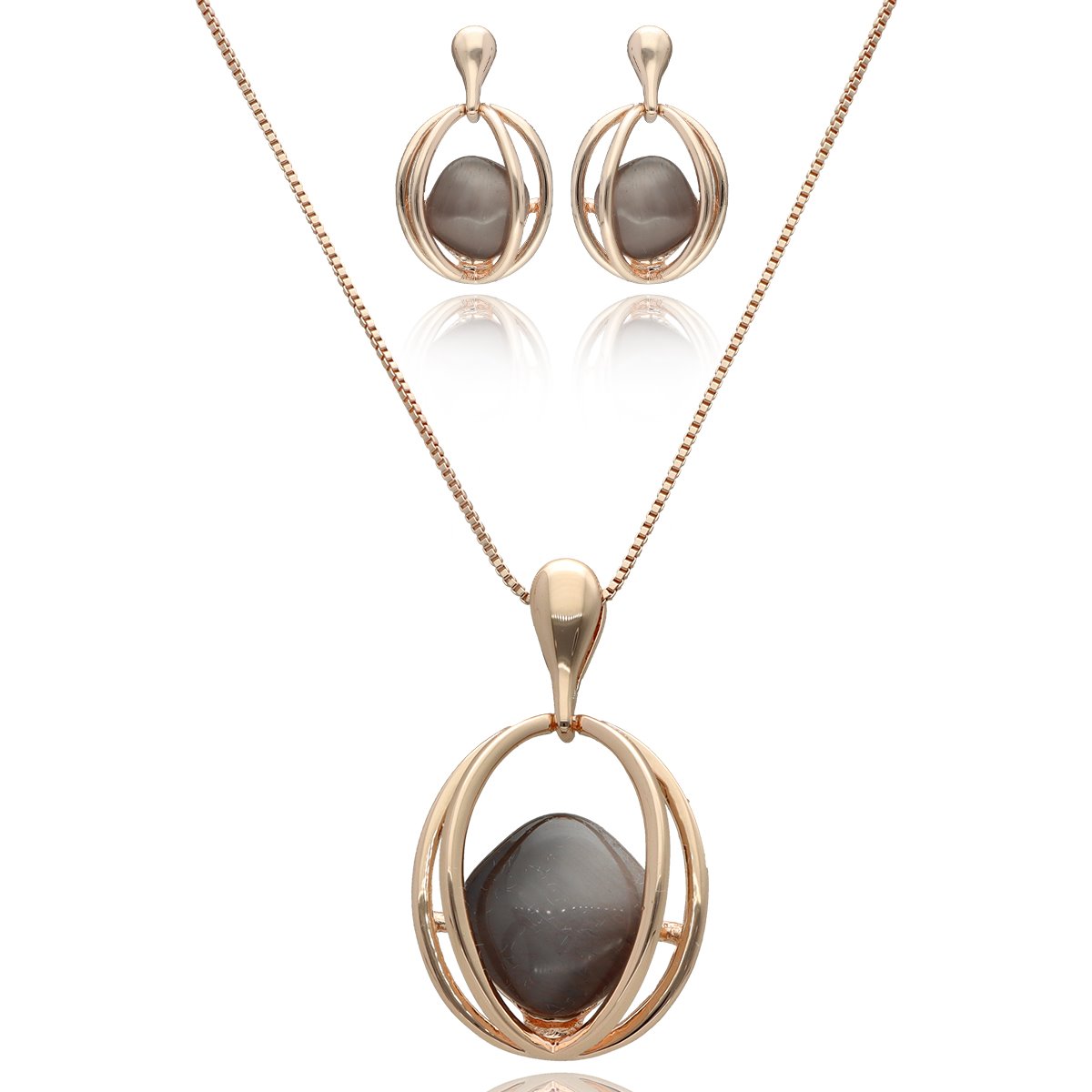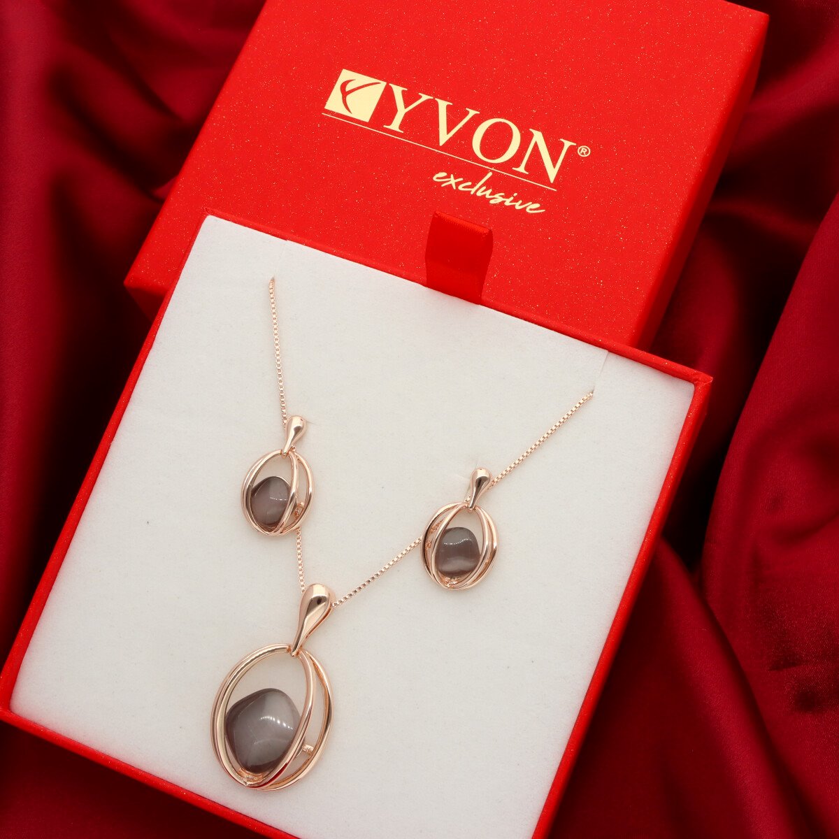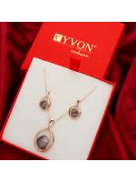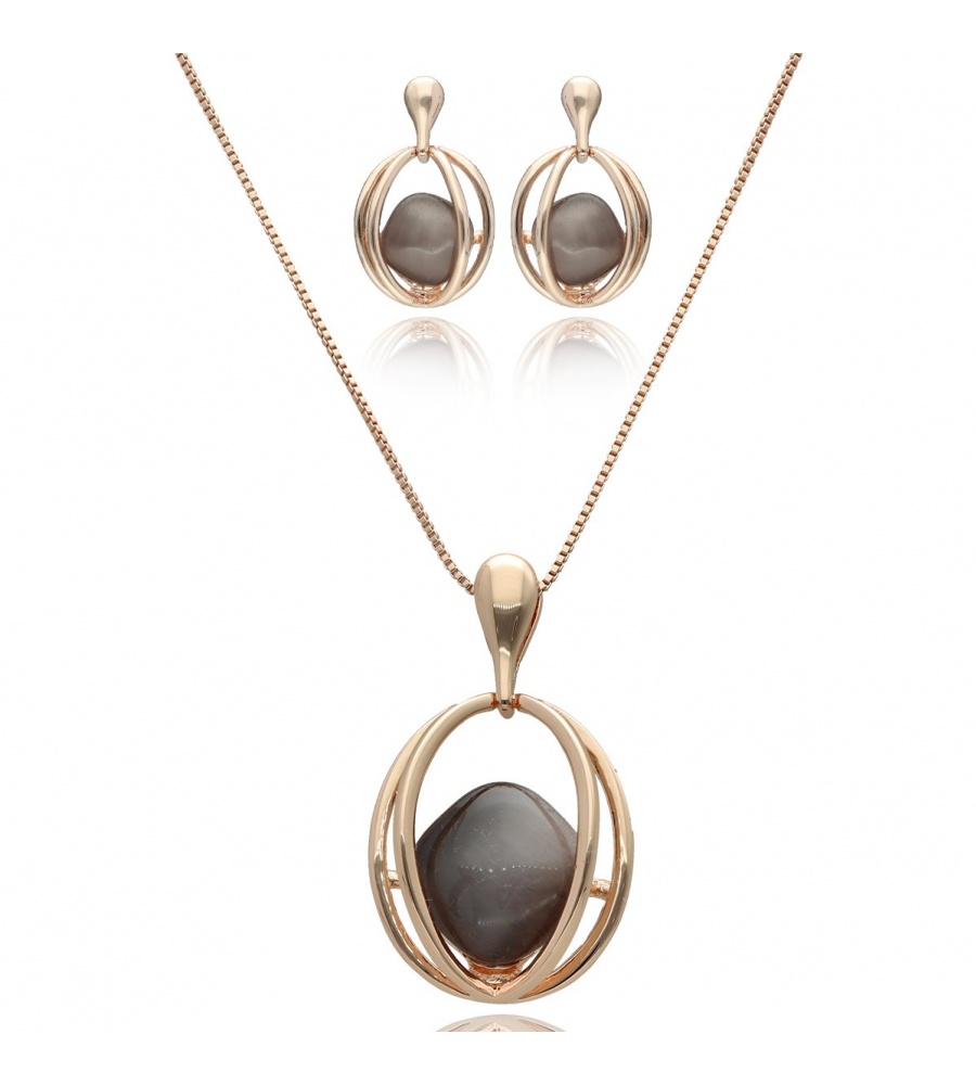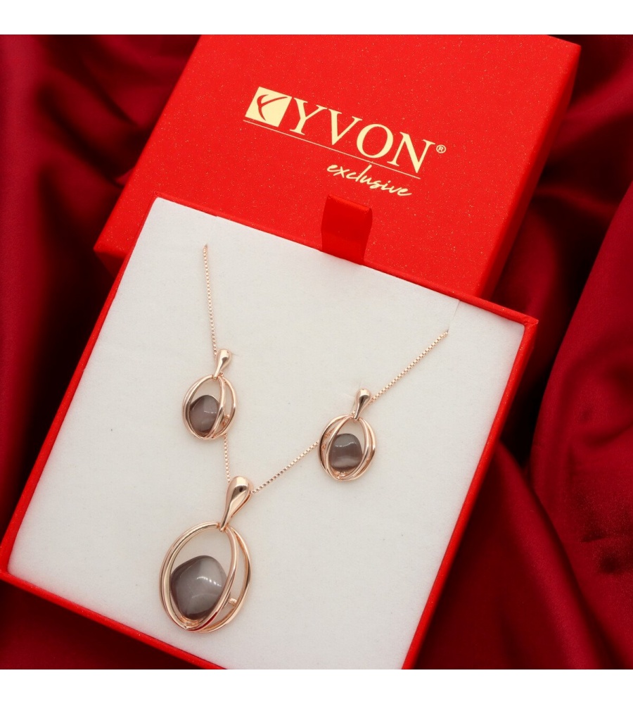 Wyjątkowo elegancki komplet biżuterii, składający się z naszyjnika i kolczyków. Wykonany z naturalnego kwarcu i metalu antyalergicznego. W ekskluzywnym pudełeczku gratis.