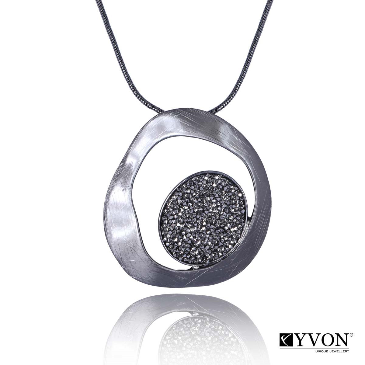 Długi, elegancki wisior, wykonany z najwyższej jakości materiałów - cyrkonii oraz w 100% anty-alergicznego, szczotkowanego metalu. Długość: 75 cm + regulacja. Na eleganckim łańcuszku typu "żmijka". Znakomicie uzupełni codzienne lub wieczorowe stylizacje, wysmuklając sylwetkę.