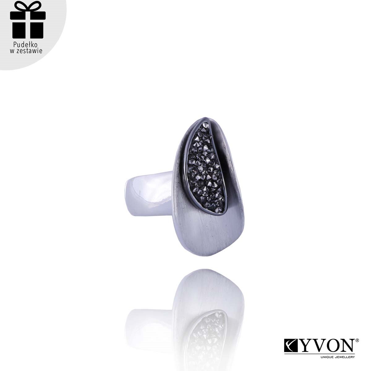 Elegancki pierścionek wykonany w całości z najwyższej jakości materiałów - kruszonego szkła fasetowanego oraz w 100% anty-alergicznego, szczotkowanego metalu. Rozmiar uniwersalny - elastyczny. Szukaj do kompletu naszyjnika, bransoletki oraz kolczyków o tym samym indeksie numerycznym. W ekskluzywnym PUDEŁECZKU GRATIS.