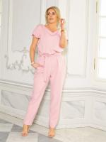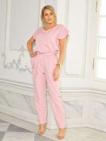 Kombinezon z paskiem i delikatnym rękawkiem w kolorze różowym to elegancka i zarazem wygodna propozycja na różnorodne okazje. Wykonany z wysokiej jakości materiału, doskonale podkreśla sylwetkę dzięki subtelnemu paskowi w talii, który nadaje mu kobiecego charakteru. Krótkie, delikatne rękawki dodają lekkości i elegancji, a kolor niebieski sprawia, że całość wygląda świeżo i stylowo. Idealny zarówno na codzienne stylizacje, jak i na bardziej formalne wyjścia. Kombinezon łączy komfort z elegancją, stając się must-have w każdej szafie.