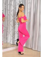 Letnie komplety damskie to absolutny must-have w każdej garderobie. Krótka bluzka z różami oraz wyjątkowo modny krój spodni w połączeniu ze sobą sprawdzą się idealnie na różnego rodzaju okazję jak i na co dzień. Komplet uszyty jest z elastycznego materiału, który dopasuje się do Twojej sylwetki.