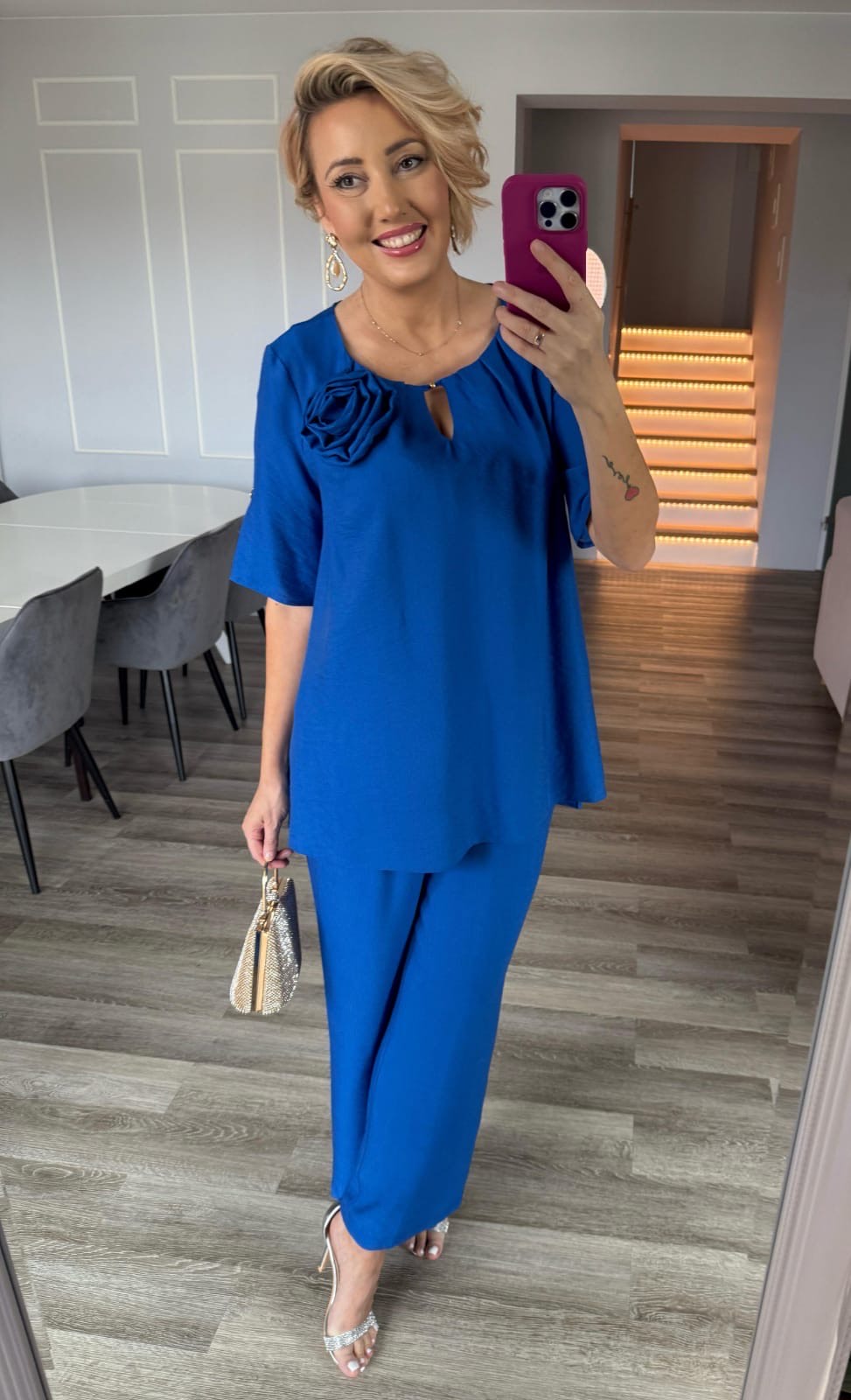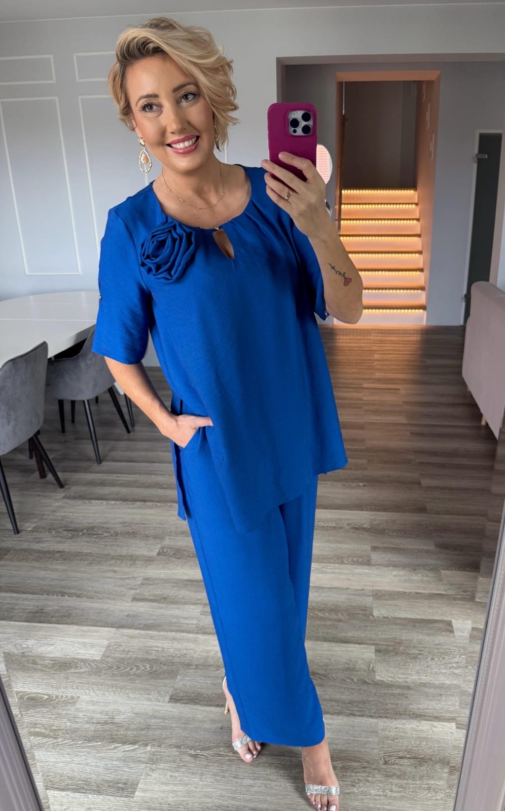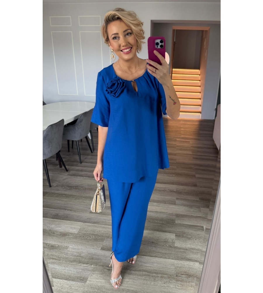 Stylowy komplet w odcieniu szafirowym to doskonały wybór na każdą okazję – od codziennych wyjść, przez spotkania ze znajomymi, aż po bardziej eleganckie stylizacje.
