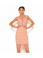 Elegancka koronkowa sukienka w kolorze beżowym uszyta z gipiury na szerszym ramiączku, zasuwana z tyłu na kryty zamek . Sukienka jest na podszewce.