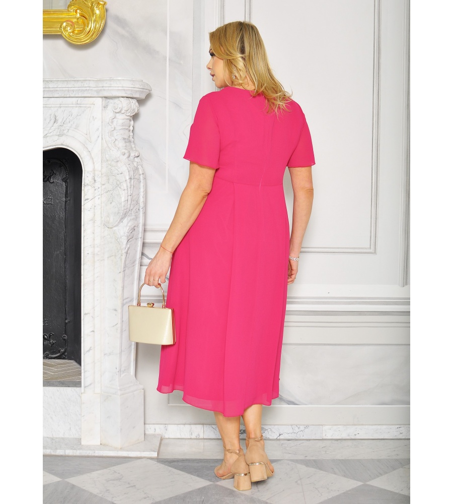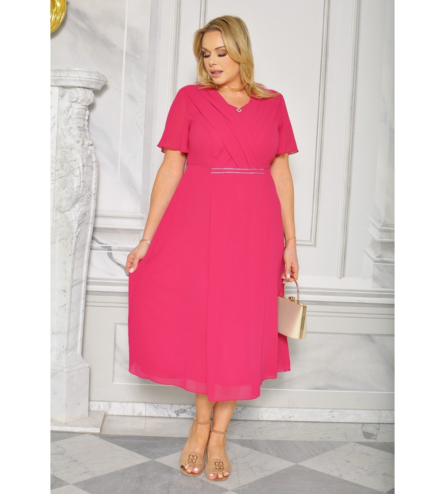 Sukienka midi w kolorze malinowym, z aplikacją w talii i lekko rozkloszowanym dołem, sukienka to idealna propozycja na wesela, komunie. chrzciny.Całość uszyta z wysokiej jakości materiału,model posiada także podszewkę. Idealna na różne okazje okolicznościowe.