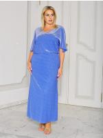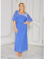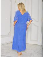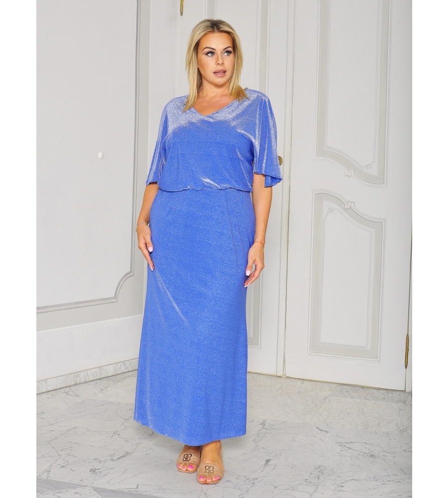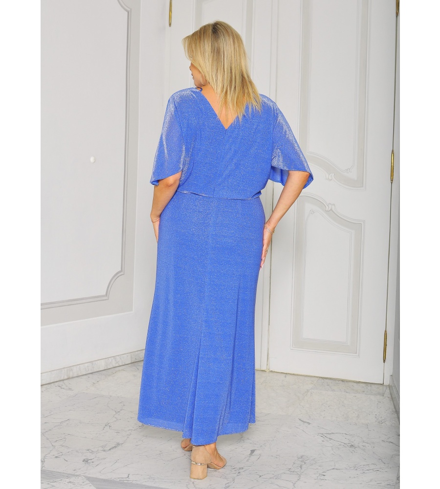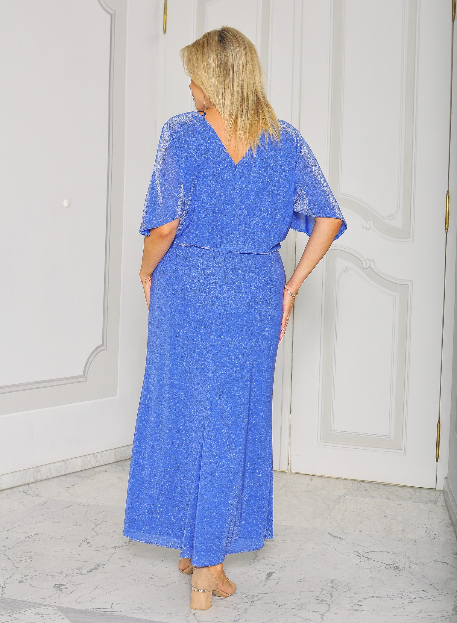 Długa elegancka szafirowa sukienka z efektownymi 3/4 rękawami z rozciętymi z luźną górą. Dół sukienki prosty, model posiada także podszewkę. Całość uszyta z wysokiej jakości materiału.