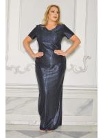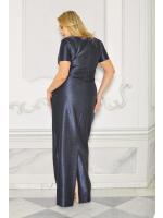 Elegancka maxi prosta sukienka w kolorze granatowym z delikatnym rękawkiem. Dżety przyszyte od dekoltu do dołu tworzą efekt litery A. Sukienka zasuwana na kryty zamek, posiada elastyczną podszewką. Idealnie prezentuje się z dodatkami.