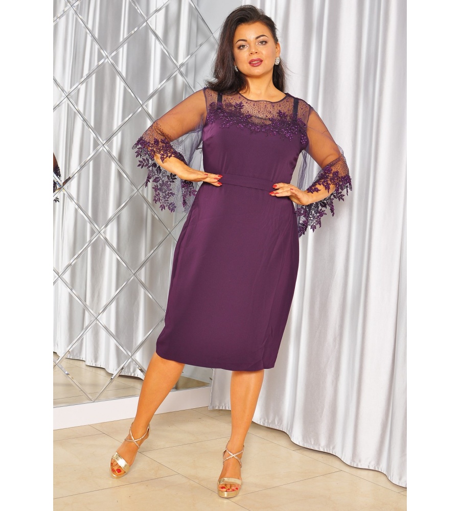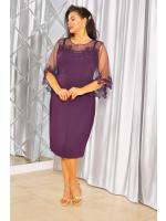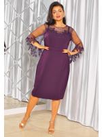 Elegancka sukienka z prostą spódnicą na elastycznej podszewce, szerokimi rękawkami zdobionymi haftem , dżetami i perełkami. Odcinana w talii zakładką z materiału. Zasuwana na kryty zamek. Model idealny na wiele okazji.