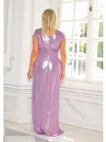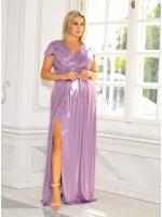 Połyskująca sukienka maxi z kopertowym dekoltem uwydatniającym biust. Marszczenie w okolicy talii oraz dekoltu, idealnie tuszuje niedoskonałości figury. Podszewka elastyczna. Model zapinany na kryty zamek. Ze szpilkami oraz kopertówka ta stylizacja będzie wyglądać obłędnie.