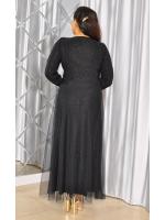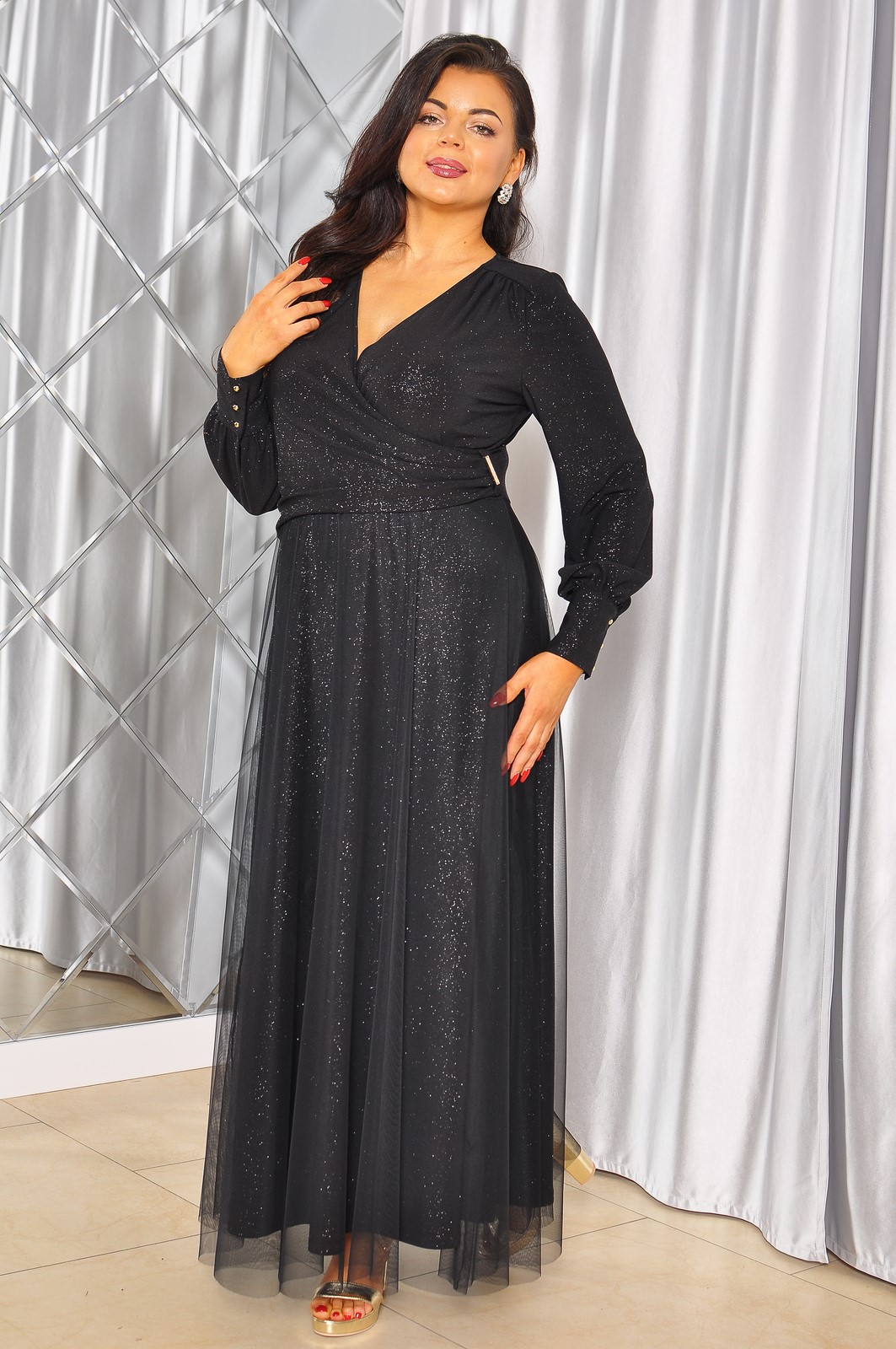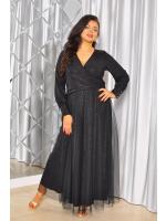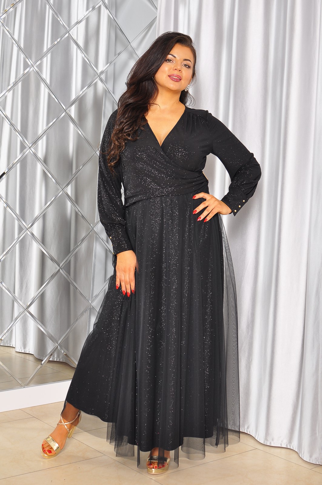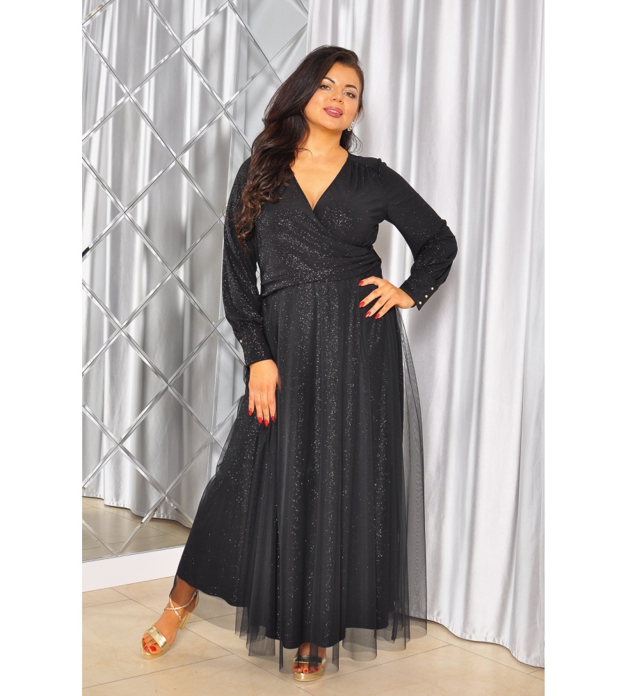 Zachwycająca, długa sukienka wieczorowa stworzona dla kobiet, które kochają połączenie blasku i lekkości. Góra sukienki wykonana jest z delikatnie połyskującej, brokatowej tkaniny, która pięknie odbija światło przy każdym ruchu. Długie rękawy dodają elegancji i subtelnie podkreślają sylwetkę, zapewniając jednocześnie komfort i szyk.
