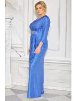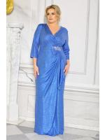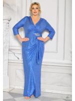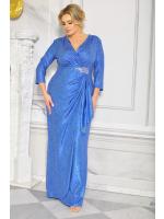 Połyskująca sukienka maxi z kopertowym dekoltem uwydatniającym biust. Marszczenie w okolicy talii, idealnie tuszuje niedoskonałości figury. Podszewka elastyczna. Model zapinany na kryty zamek. Ze szpilkami oraz kopertówka ta stylizacja będzie wyglądać obłędnie.