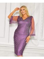 Nietuzinkowa sukienka bogato zdobiona na całej długości w kolorze FIOLETOWYM. Model posiada wszyte miseczki oraz TIULOWY rękaw 3/4. Zasuwana na kryty zamek. Idealnie sprawdzi się jako kreacja na wesele lub sylwestra.
