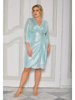 Połyskująca sukienka midi z kopertowym dekoltem uwydatniającym biust. Marszczenie w okolicy talii, idealnie tuszuje niedoskonałości figury. Podszewka elastyczna. Model zapinany na kryty zamek. Ze szpilkami oraz kopertówka ta stylizacja będzie wyglądać obłędnie.