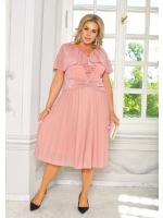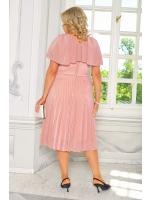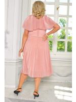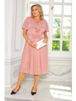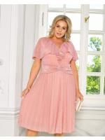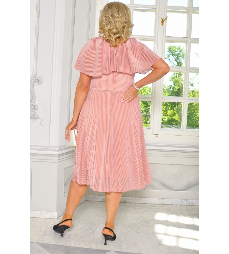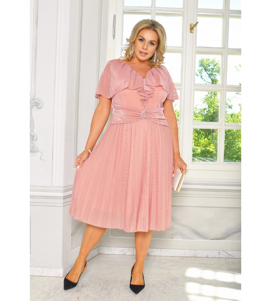 Sukienka midi posiada falbankę przy dekolcie oraz delikatną ozdobę w tali. Prążkowany materiał przez który będziesz czuła się w niej lekko i swobodnie. Model posiada kryty zamek z tyłu. Idealna propozycja na wesele, komunie i inne imprezy okolicznościowe.