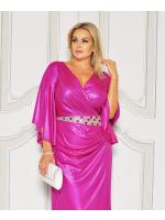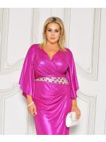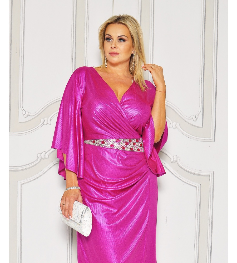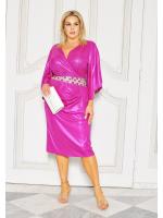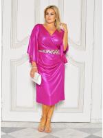 Wieczorowa sukienka midi w kolorze różowym ze zdobieniem w talii, które idealnie tuszuje wszelkie niedoskonałości figury. Idealna dla Pań które cenią sobie elegancję i kobiecość.