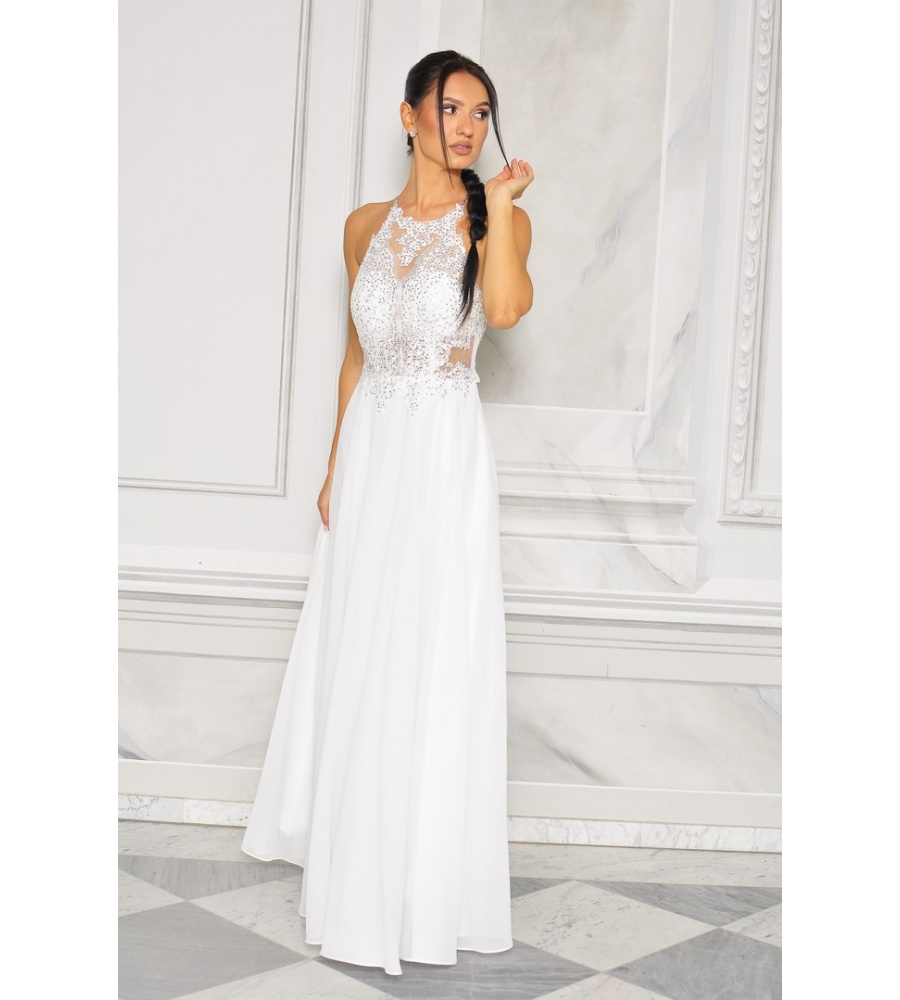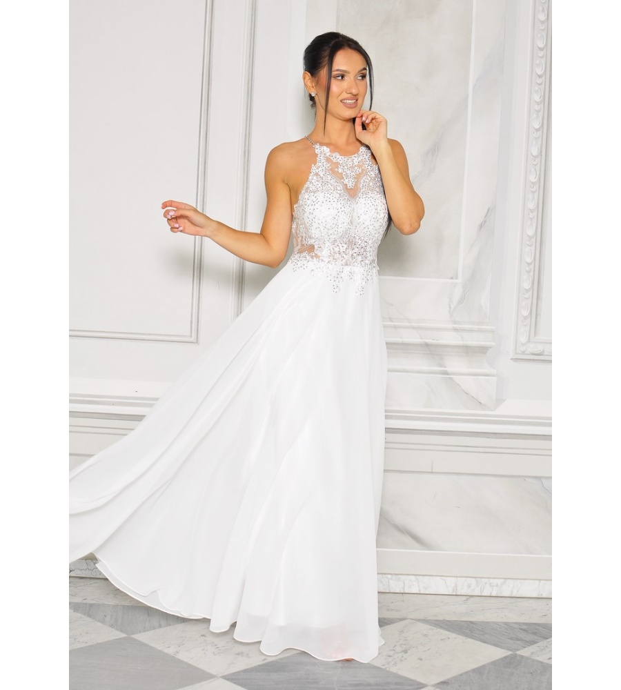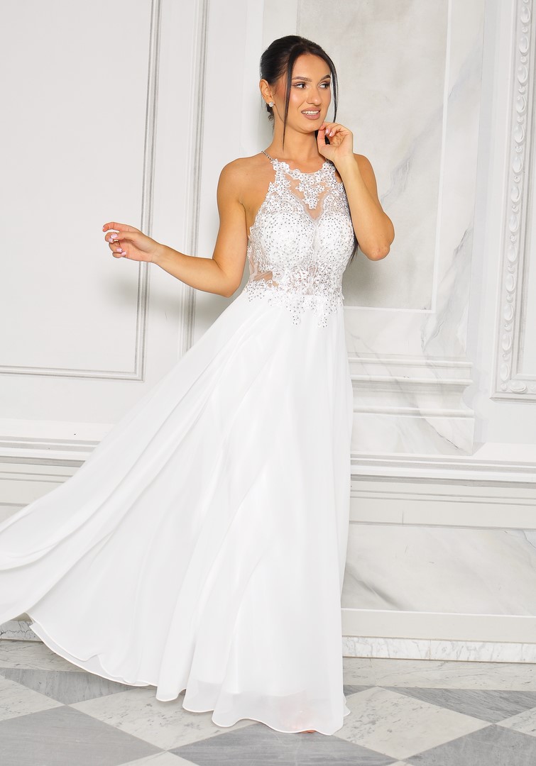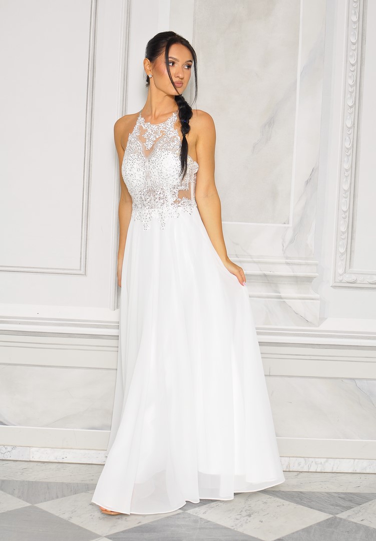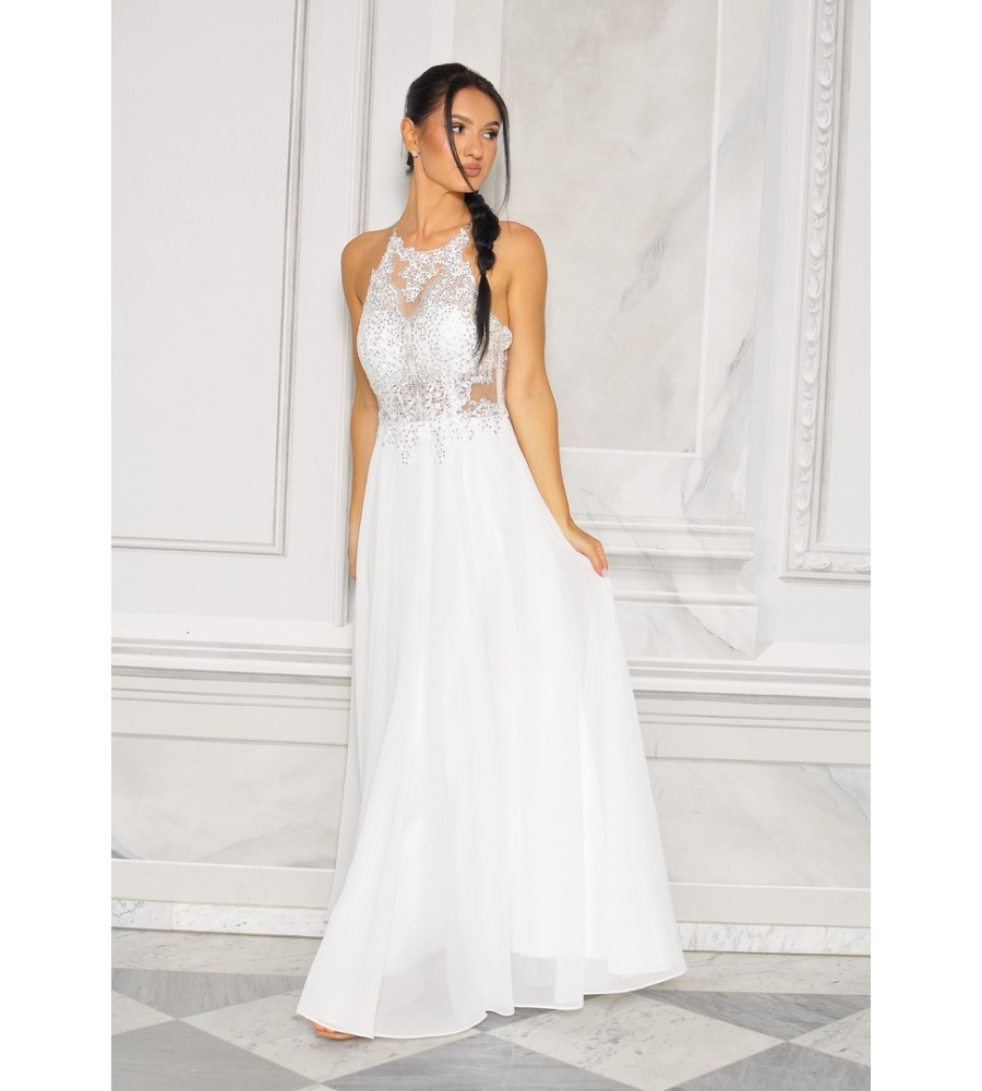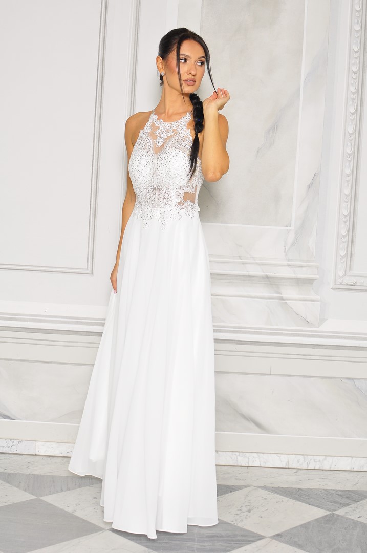 Suknia ślubna maxi Mercedes – zdobiona, pod szyję