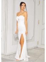 Fason bez ramiączek pięknie eksponuje ramiona i dekolt, dodając stylizacji subtelnej zmysłowości.