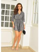 Krótki kombinezon z rękawkiem 3/4 to stylowe i wygodne połączenie kobiecej elegancji z codziennym komfortem. Wykonany z lekkiego, przyjemnego w dotyku materiału, świetnie układa się na sylwetce i zapewnia swobodę ruchów. Rękaw 3/4 nadaje mu klasycznego charakteru, dzięki czemu sprawdza się zarówno na co dzień, jak i na bardziej casualowe wyjścia.