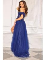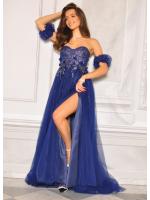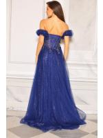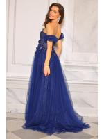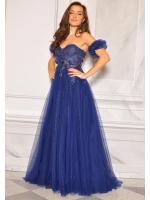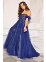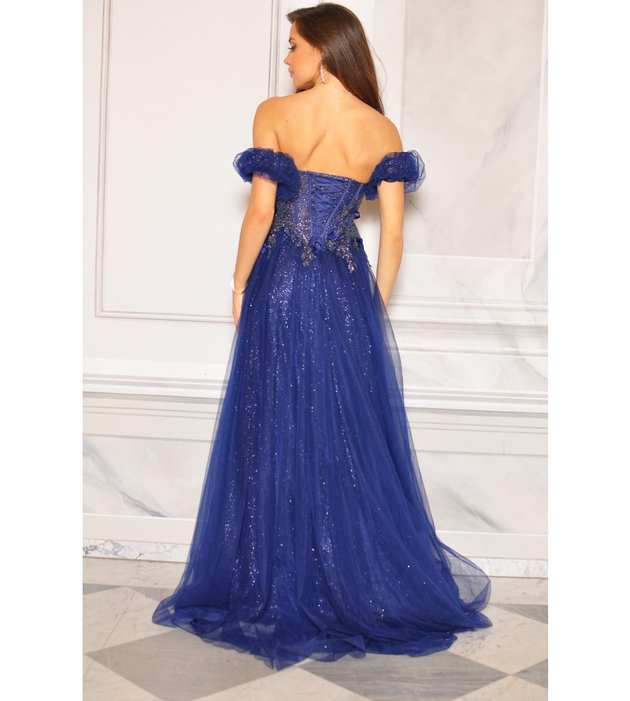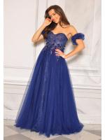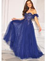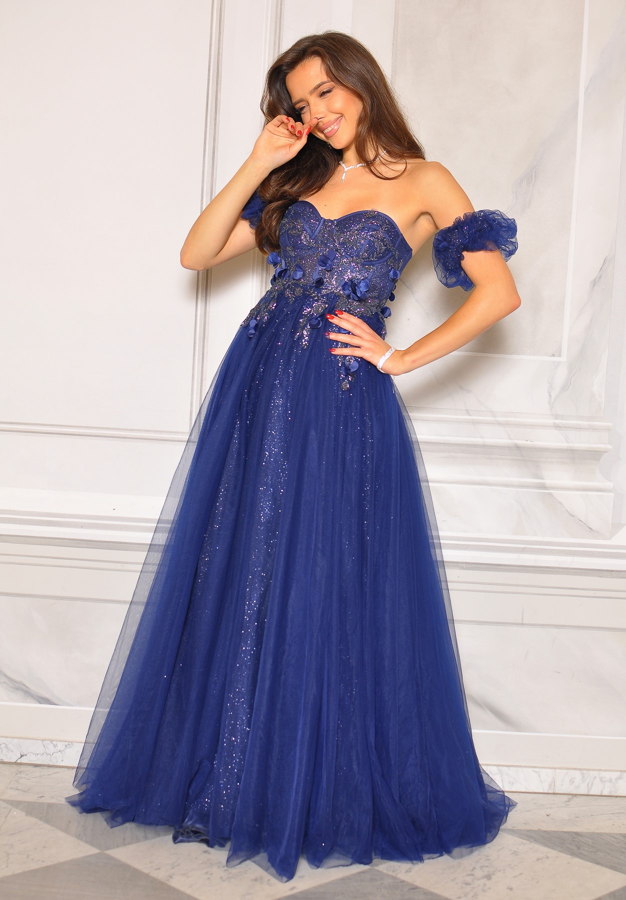 Zjawiskowa tiulowa sukienka maxi o rozkloszowanym kroju, stworzona z myślą o wyjątkowych okazjach. Gorset bogato zdobiony drobnymi aplikacjami i delikatnie usztywniany, pięknie podkreśla talię i biust. Dodatkowe bufki na ramionach nadają całości romantycznego, bajkowego charakteru, a warstwowy tiulowy dół subtelnie unosi się w ruchu. Sukienka idealna na przyjęcia, bale, wesela czy sesje zdjęciowe.