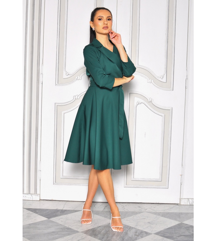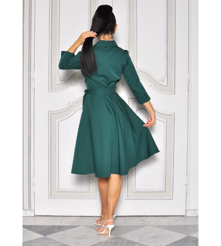 Ta sukienka z paskiem podkreśla kobiecą sylwetkę, dzięki swojemu rozkloszowanemu krojowi i krótkimi rękawami. Wykonana z gładkiego materiału bez wzorów, jest idealna na wieczorne wyjścia i specjalne okazje. Dzięki swojej subtelnej elegancji, ta sukienka jest niezastąpionym elementem garderoby każdej damy. Dodaj swoją osobistą nutę stylu, zestawiając ją z ulubionymi dodatkami i stwórz niezapomniany wygląd, który przyciągnie uwagę wszystkich do Ciebie. Model posiada praktyczne kieszenie.