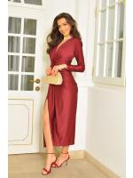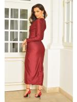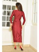 Elegancka sukienka MIDI w kolorze BORDOWYM to idealna propozycja dla kobiet ceniących sobie styl i elegancję. Krój pięknie podkreśla figurę. Odważny dekolt w kształcie litery V dodaje uroku. Model posiada poduszki na ramionach. Znakomita na ważne uroczystości czy też sylwestra. Totalny must have w Twojej szafie