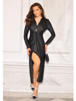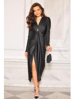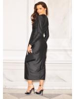 Elegancka sukienka MIDI w kolorze czarnym pokryta dzetami to idealna propozycja dla kobiet ceniących sobie styl i elegancję. Krój pięknie podkreśla figurę. Odważny dekolt w kształcie litery V dodaje uroku. Model posiada poduszki na ramionach. Znakomita na ważne uroczystości czy też sylwestra. Totalny must have w Twojej szafie