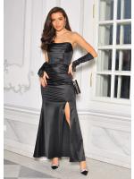 Ta satynowa sukienka maxi to idealne połączenie klasyki i zmysłowości. Wykonana z połyskującej, miękko układającej się tkaniny, delikatnie opływa sylwetkę, podkreślając jej atuty. Subtelne marszczenie z boku dodaje charakteru i pięknie modeluje talię, a wyjątkowy dekolt przyciąga spojrzenia i nadaje stylizacji kobiecego uroku.