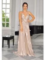 Ta zjawiskowa złota sukienka maxi to kwintesencja wieczorowego glamouru. Wykonana z połyskującego materiału, który pięknie odbija światło, przyciąga spojrzenia i nadaje całości luksusowego charakteru.