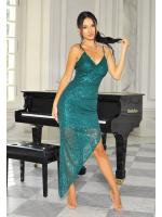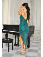 Asymetryczna sukienka maxi pokryta w całości cekinami, które pięknie się mienią w słońcu. Dekolt w kształcie literki V pięknie uwydatni biust, a asymetryczny przód sukienki podkreśli kobiece atuty. Wykonana z wysokiej jakości materiału. Idealnie sprawdzi się na imprezy okolicznościowe.