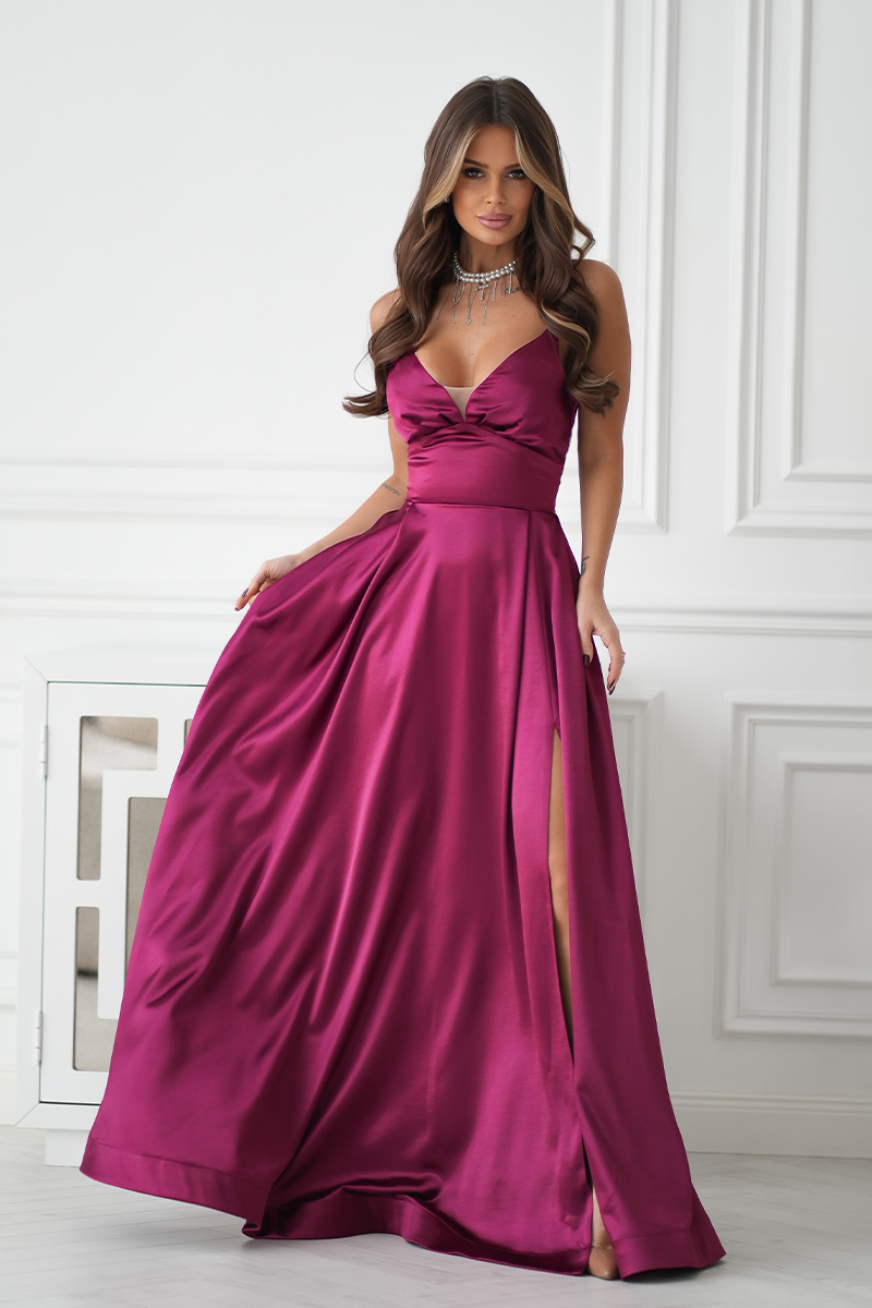 “Sukienka w głębokim, bordowym odcieniu zachwyca subtelną, lekko rozkloszowaną linią, która pięknie podkreśla kobiecą sylwetkę. Delikatne, cienkie ramiączka dodają lekkości, a zmysłowe wiązanie na plecach stanowi wyrafinowany akcent, przyciągający spojrzenia. To model emanujący elegancją i ponadczasowym urokiem — idealny na wieczorne wyjścia, uroczyste okazje i wyjątkowe spotkania