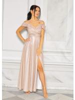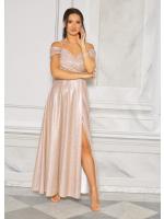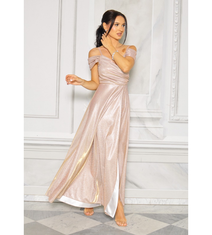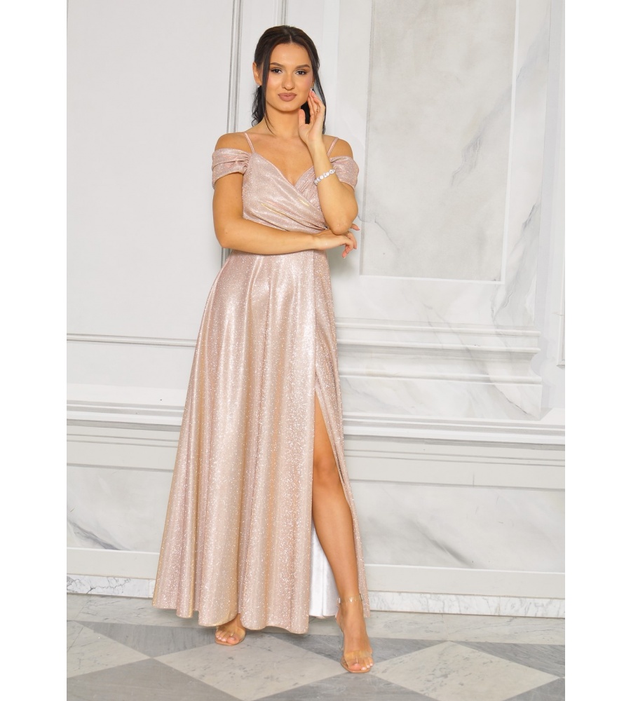 Olśniewająca sukienka maxi stworzona z myślą o wyjątkowych okazjach. Pokryta subtelnym brokatowym połyskiem, przyciąga wzrok i pięknie mieni się w świetle, dodając całej stylizacji luksusowego charakteru.