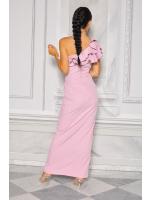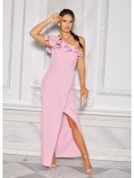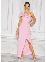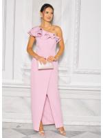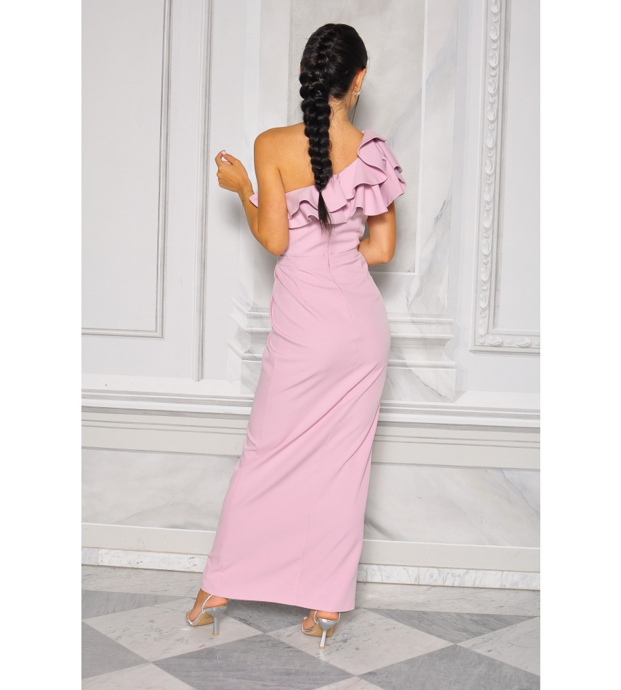 Elegancka sukienka maxi na jedno ramię. Model ozdobiony falbanką. Idealna na wesele lub poprawiny.