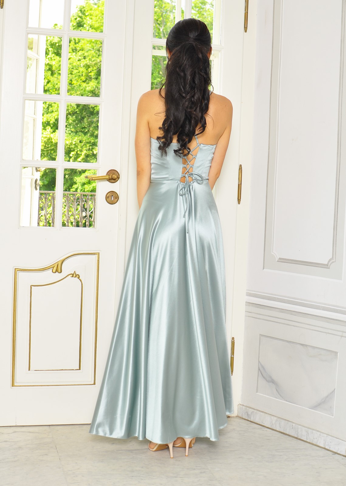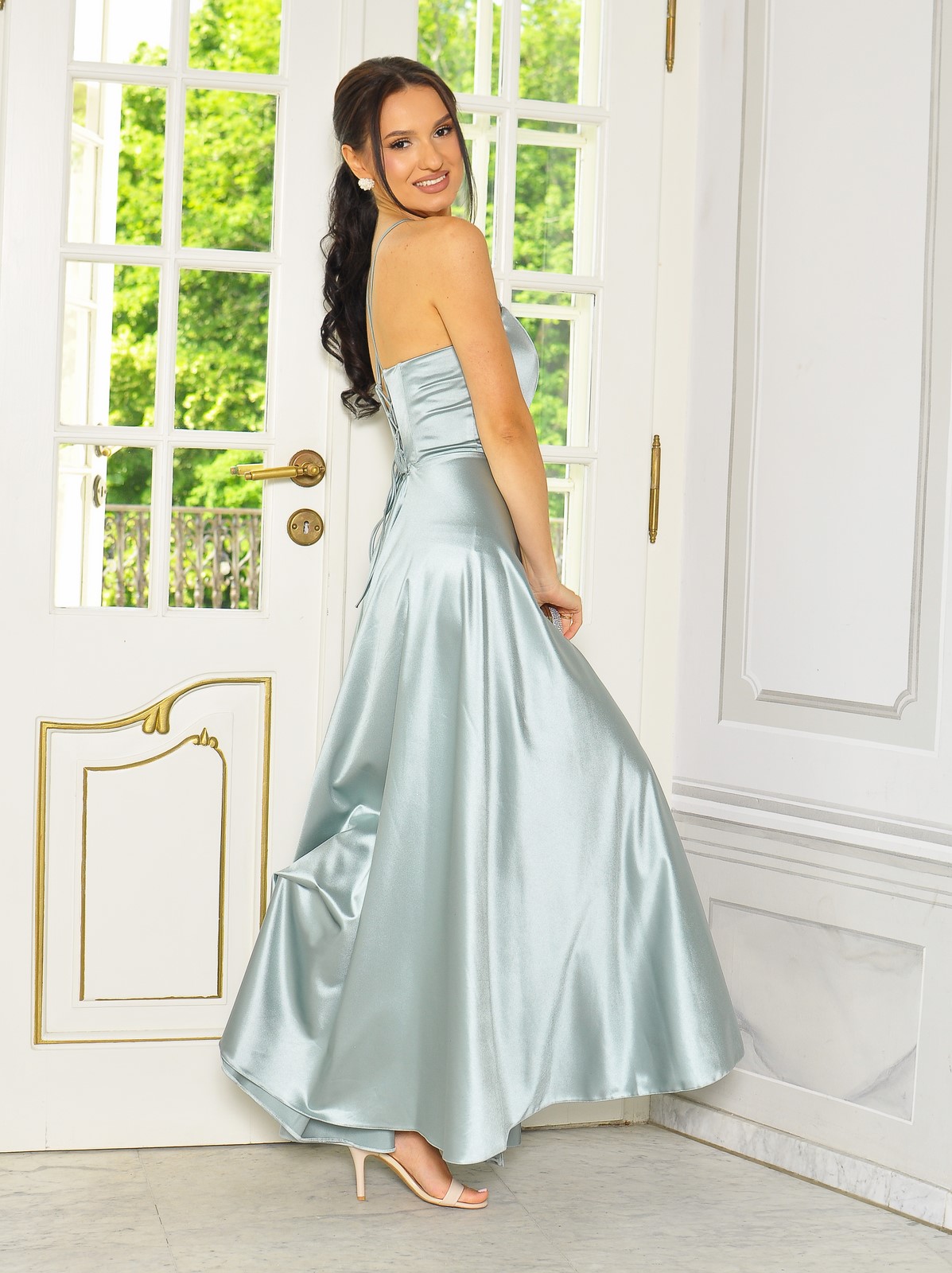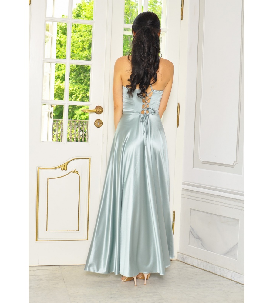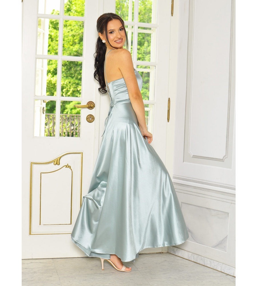 Sukienka maxi satynowa z gorsetem. Zjawiskowa kreacja w przyciągającym wzrok kolorze. Gorsetowa góra sukienki dodaje jej uroku oraz szyku. Dół z rozcięciem na nogę. Model posiada cienkie regulowane ramiączka, dzięki którym dopasujesz sukienkę do swojej sylwetki. Idealnie sprawdzi się na studniówkę, wesele oraz poprawiny!