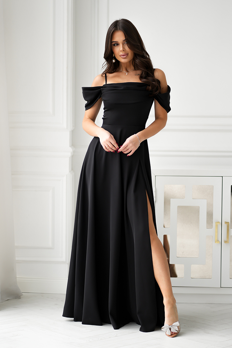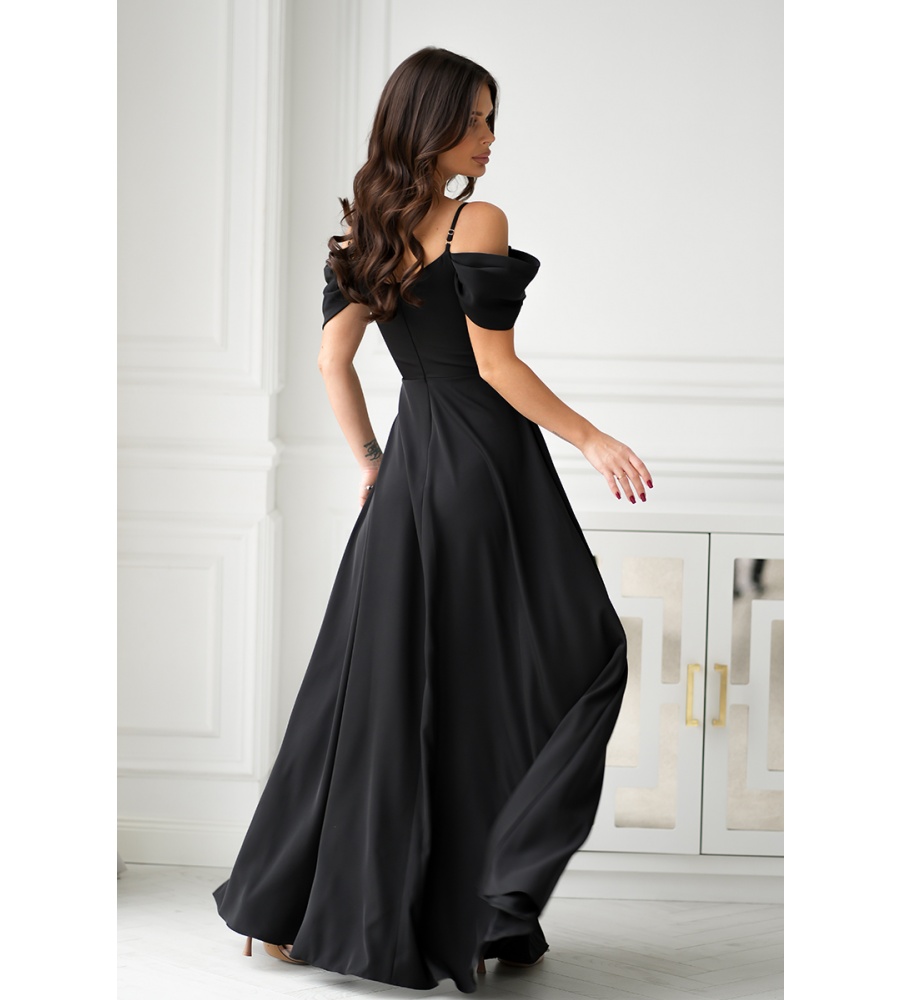Sukienka maxi z opadającymi rękawami to elegancka i subtelna propozycja, która zachwyca swoim wyjątkowym stylem. Wykonana z połyskującego materiału, odbija światło, tworząc efektowny blask, który przyciąga wzrok. Opadające rękawy nadają jej romantycznego i lekko zwiewnego charakteru, sprawiając, że całość prezentuje się niezwykle kobieco i zmysłowo. Sukienka ma długą, elegancką linię, która podkreśla sylwetkę, a jednocześnie zapewnia komfort i swobodę ruchów. Doskonała na wieczorne wyjścia, wesela czy inne wyjątkowe okazje, gdzie liczy się zarówno elegancja, jak i unikalny styl.