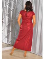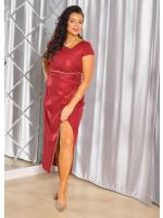 Elegancka sukienka midi w głębokim, bordowym kolorze, zaprojektowana z myślą o podkreśleniu kobiecej sylwetki. Jej prosty krój został urozmaicony subtelnym marszczeniem, które optycznie modeluje figurę.