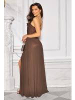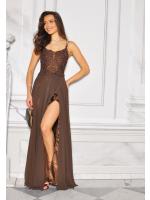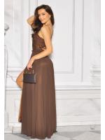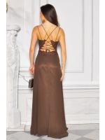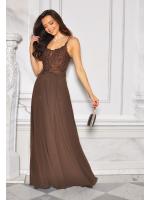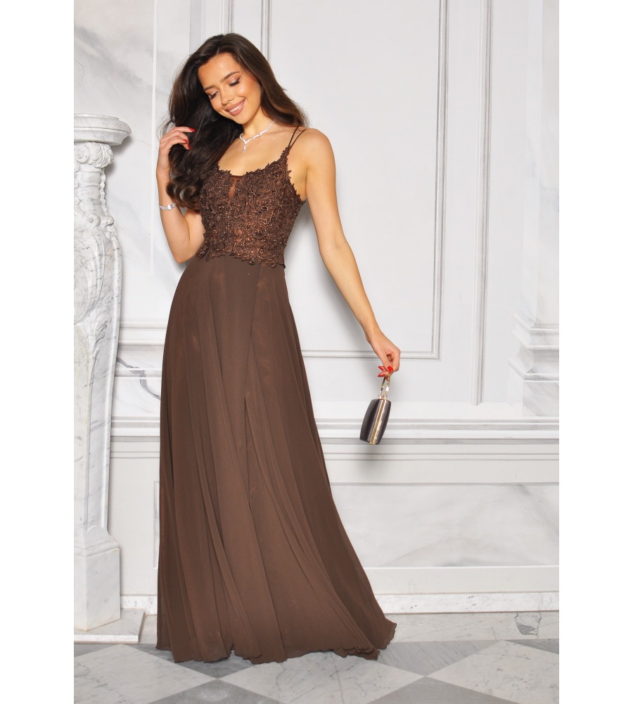 Sukienka maxi w kolorze brązowym z dżetową górą i wiązaniem na plecach to elegancka i efektowna propozycja dla kobiet, które lubią błyszczeć. Góra ozdobiona połyskującymi dżetami pięknie podkreśla dekolt i ramiona, nadając kreacji wieczorowego charakteru. Model posiada zmysłowe wiązanie na plecach, które dodaje lekkości oraz kobiecego uroku. Długość maxi sprawia, że sukienka wygląda niezwykle szykownie i podkreśla sylwetkę. Idealna na przyjęcia, wesela, bankiety i wyjątkowe okazje