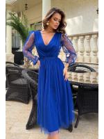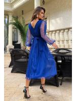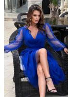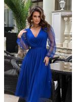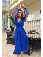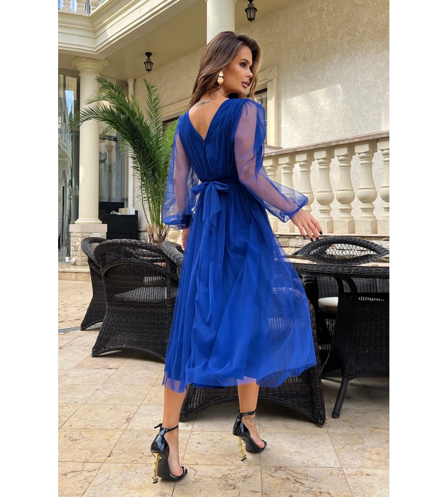 Sukienka posiada rozkloszowany dół, długi delikatny rękaw oraz kryty zamek z tyłu. Idealnie sprawdzi się na różne okazje okolicznościowe.