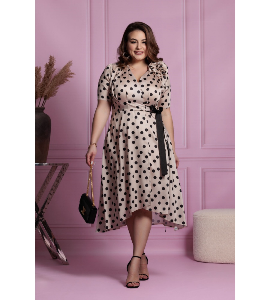 Kopertowa sukienka w grochy wiązana po boku w ponadczasowym princie grochów . Sukienka doskonała do noszenia na co dzień lub na wieczór jako sukienka wizytowa czy koktajlowa. Świetnie leży i jest bardzo kobieca. Stylowa i bardzo modna propozycja która skradnie serce wielu z Was. Fason który idealny jest na eleganckie przyjęcia jak i na wakacyjny spacer brzegiem morza. Idealny model na słoneczne dni, imprezy okolicznościowe, wakacje.