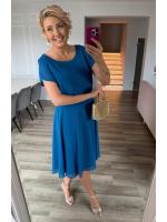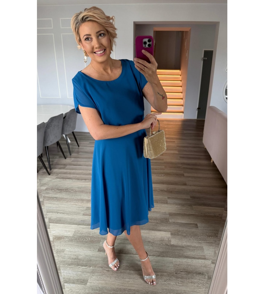 Stylowa sukienka midi w energetycznym turkusowym odcieniu to połączenie klasy i nowoczesności. Krótki rękawek zapewnia komfort noszenia, a dekoracyjny łańcuszek w talii pięknie podkreśla sylwetkę i dodaje eleganckiego akcentu. Lekko rozkloszowany fason sprawia, że sukienka prezentuje się lekko i kobieco.