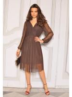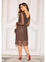 Stylowa i kobieca sukienka midi, która zachwyca subtelnym blaskiem i klasycznym krojem. Wykonana z tkaniny pokrytej dżetami, pięknie mieni się w świetle, dodając elegancji i szyku.