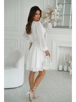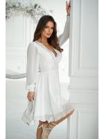 Wizytowa sukienka z pięknymi wstawkami na dekolcie oraz w talii, długim rękawem z szyfonowego materiału. Sukienka jest bardzo lekka oraz wygodna w noszeniu przez swój delikatny materiał. Idealnie sprawdzi się na różne okazje okolicznościowe.