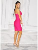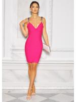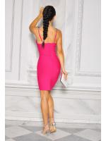 Sukienka bandażowa o długości mini w kolorze malinowym. Model sukienki pięknie dopasowuje się do sylwetki. Zdobienia na ramiączkach w postaci diamentów nadają sukience wyjątkowego uroku. Idealna na wesele lub poprawiny.