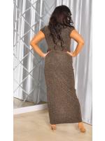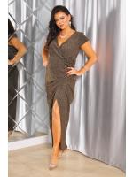 Zmysłowa i elegancka – ta sukienka o dopasowanym kroju to idealna propozycja na wyjątkowe okazje. Pokryta delikatnym brokatem subtelnie połyskuje przy każdym ruchu, podkreślając kobiecość i dodając blasku.Fason z efektownym wycięciem odsłania nogę, nadając sylwetce lekkości i nowoczesnego charakteru.