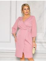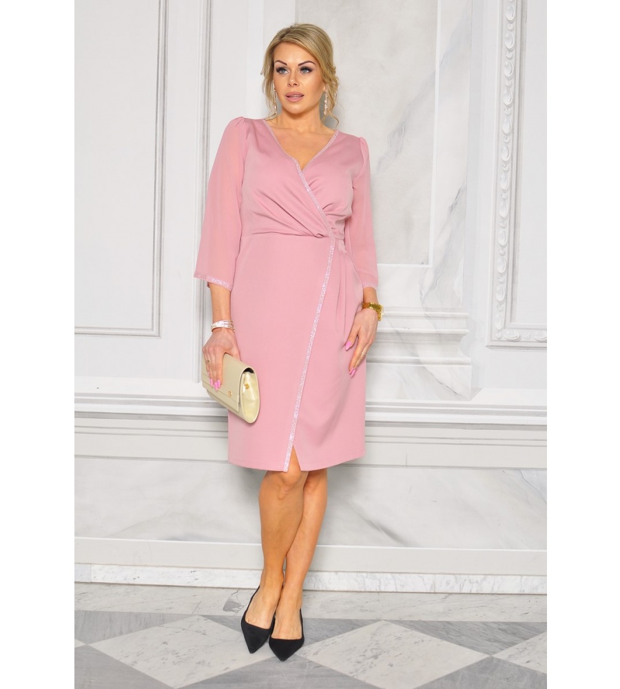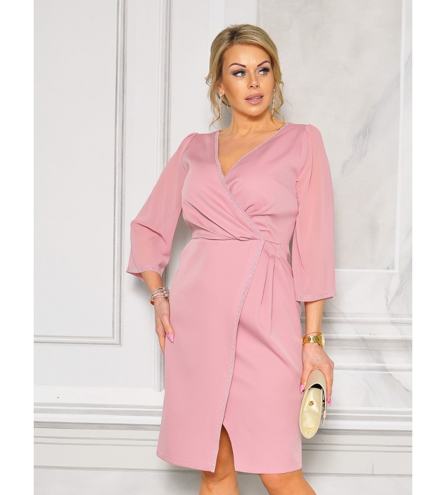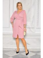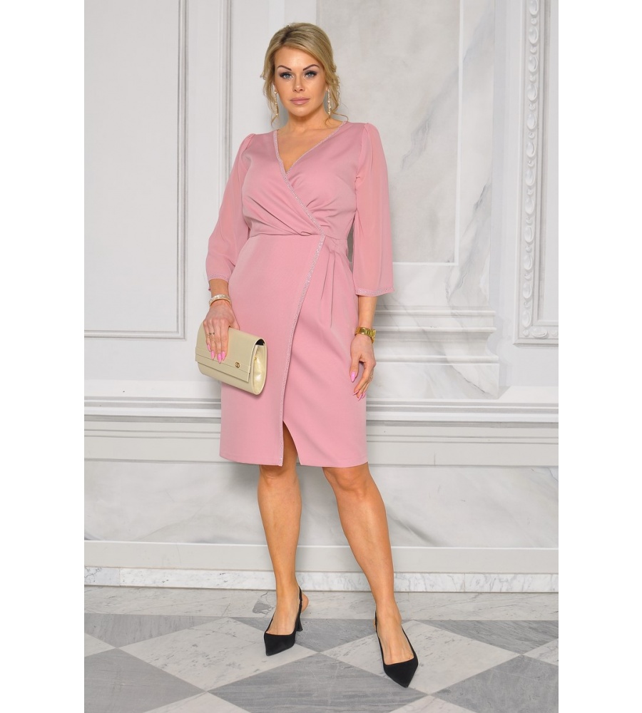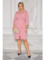 Elegancka sukienka o długości midi w subtelnym, pudrowo-różowym odcieniu. Charakteryzuje się prostym, minimalistycznym krojem, który delikatnie podkreśla sylwetkę, zapewniając jednocześnie pełen komfort noszenia.